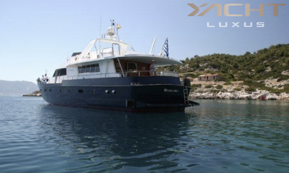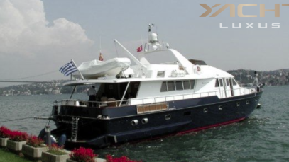 Admiral 27 for sale - REF1665: This Admiral 27 meters flybridge yacht was custom built by Cantieri Lavagna in 1977, first time in water in 1984. Refitted continually from 2000 and every year with professional maintenance that keeps the yacht in excellent condition, considering her age and compared to even newer luxury yachts. Her hull is endoscopically inspected every year and maintained professionally in excellent condition. No water leaks in the yacht. The interior wood is Tecnotropy Stucco Veneziano. She offers guest accommodation for up to 11 guests in 4 suites comprising a master suite, one VIP cabin and two twin cabins. She can accommodate up to 5 crew. Her MTU engines 3 X 870HP cruise her around 17kts@1850rpm/270lts per hour and top at 26@2400. Regular cruising speed is 20kts@2000rpm. All service invoices available for viewing during a visit to the yacht. Her fuel tanks allow 500nm range. Tender with outboard and Jetski Yamaha both launched from the flybridge with a crane, 70.000BTU A/C (of 2019) & two extra A/C units, teak all around, water maker, washing machine, dishwasher. Equipped with many additional accessories and equipment. You are welcome to contact Alvea Yachts for additional information about this Admiral 27 yacht for sale. Watch the video from this yacht!