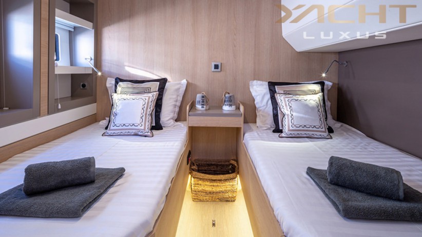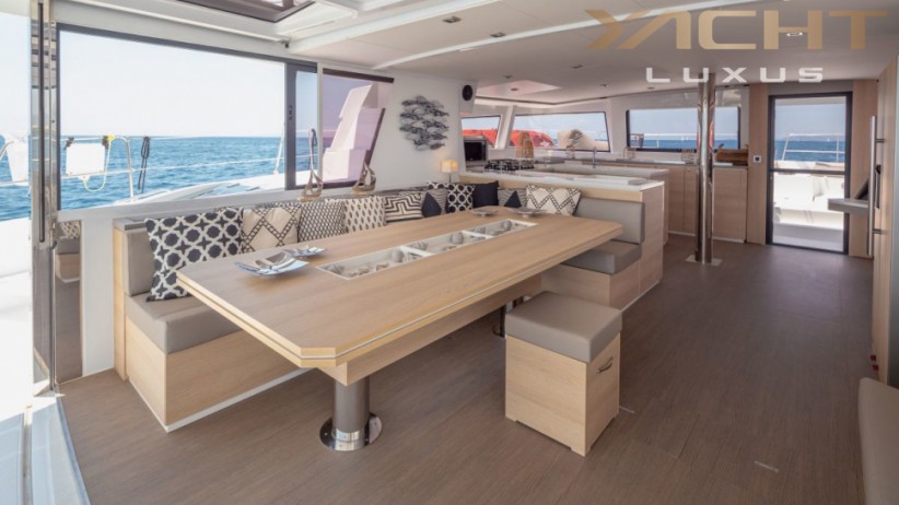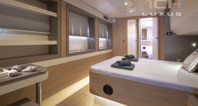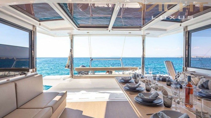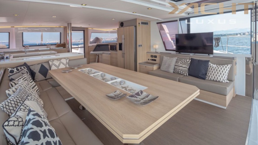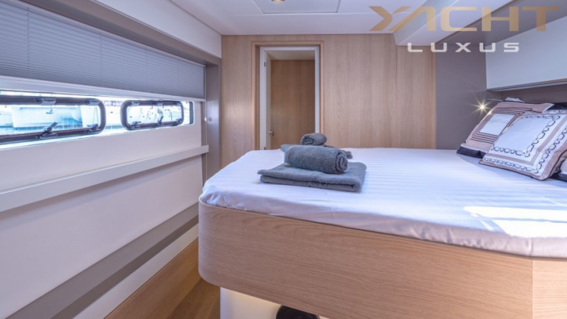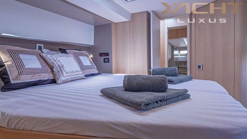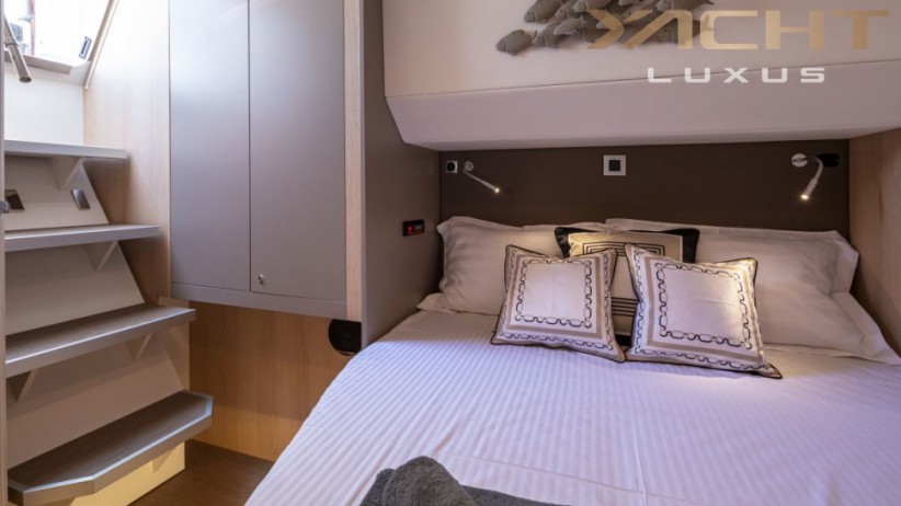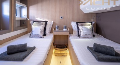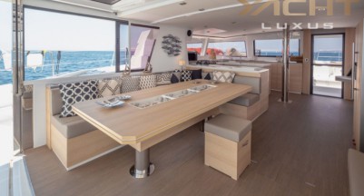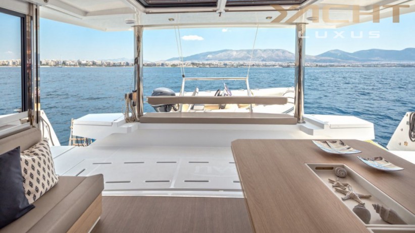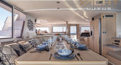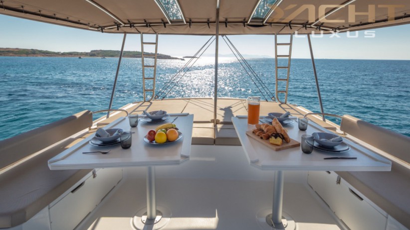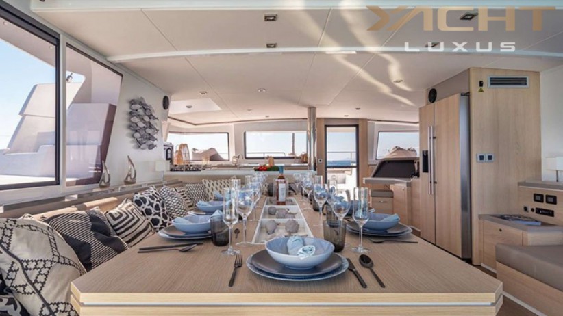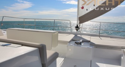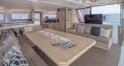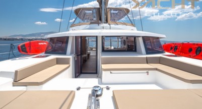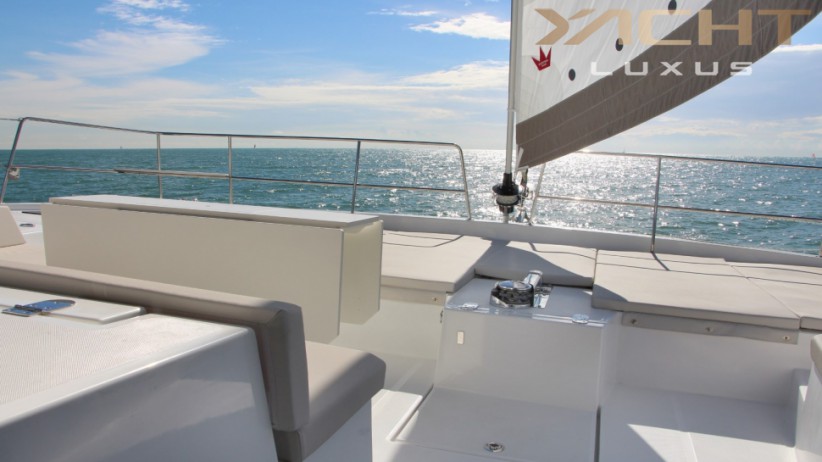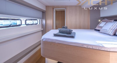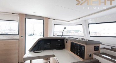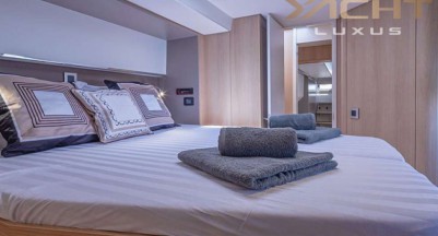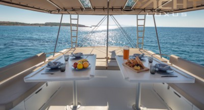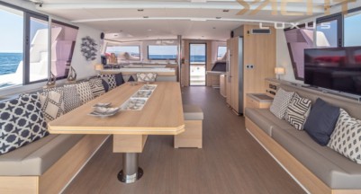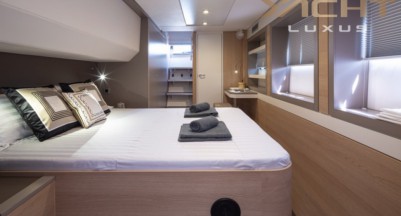 REF1504: Bali 5.4 Open Space, of the group Catana is the Winner of "Multihull of the Year 2019". Characterized by completely open spaces and very ergonomic living spaces. In addition to the recognized innovations such as the rigid front cockpit with lounge area and sunbathing, the new platform linking the two rear skirts with large bench and chests, the large tilt-and-turn door and sliding windows, a panoramic relaxation area on the roof, the BALI 5.4 offers new access to the front cockpit through an interior door and cabins through panels opening onto the rear cockpit. Powered byYanmar x280HP and fitted with roller Genoa and Lazyjack/lazybag Mainsail both in excellent condition, large american fridge 615lts with water maker, generator, air condition, smart TV, stereo with 6 speakers, rich navigational equipment, dinghy 3.60m with 30HP outboard, solar panels and many other. She is maintained in a very professional manner by her experienced owner. You are welcome to contact Alvea Yachts for additional information about this Bali 5.4 for sale.